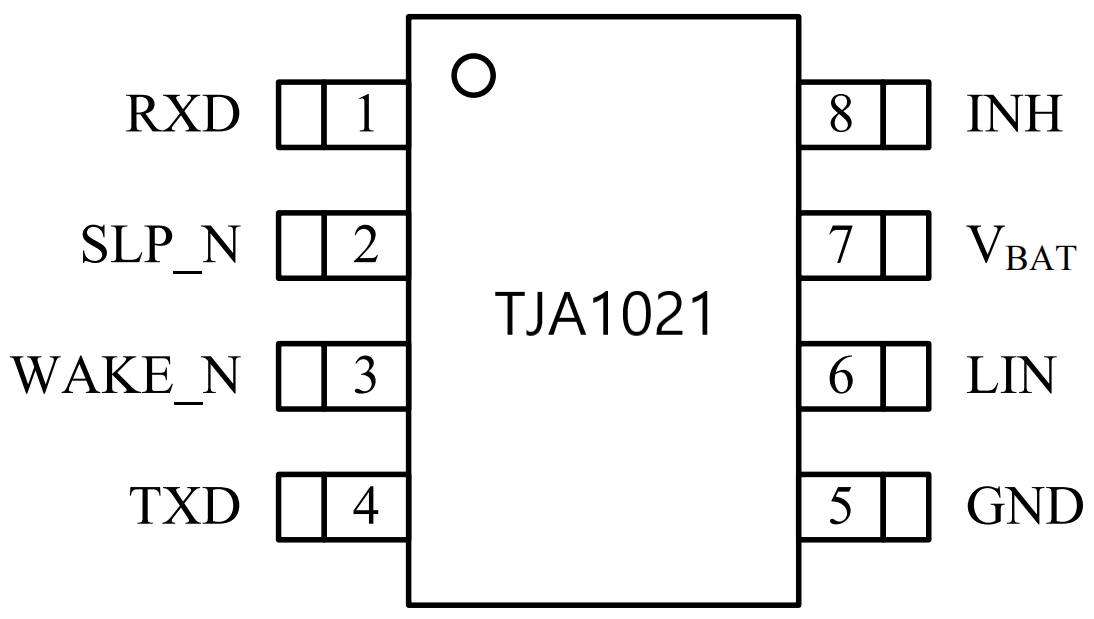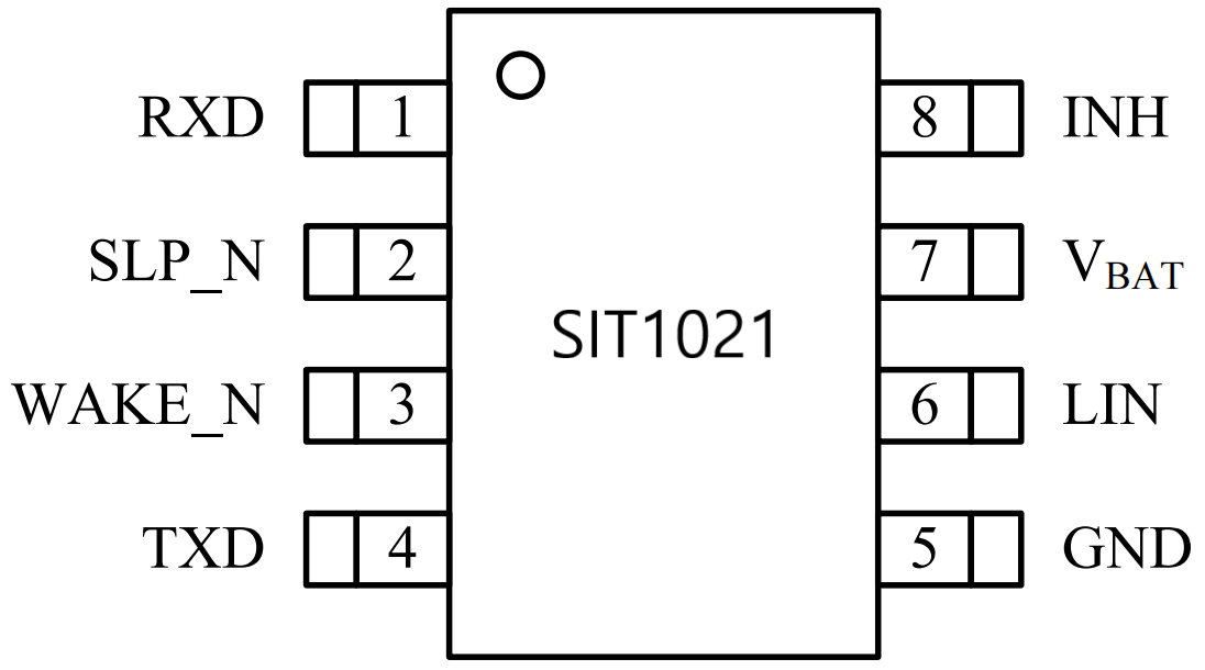 目前LIN收發(fā)器SIT1021的同類產(chǎn)品主要有NXP(TJA1021),SIT1021可以PIN TO PIN兼容。引腳分布圖分別如下: